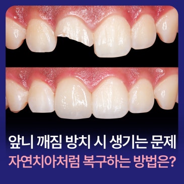일상 속에서 생각보다 쉽게 앞니가 깨지는 상황이 생깁니다. 딱딱한 음식을 먹다가, 갑작스러운 충격을 받았을 때, 혹은 오래된 치아가 약해진 경우에도 발생할 수 있습니다. 겉으로 보기에는 작은 깨짐이라 대수롭지 않게 넘기기 쉽지만, 앞니는 심미적인 역할뿐 아니라 씹는 기능과 발음에도 중요한 영향을 주는 부위입니다....