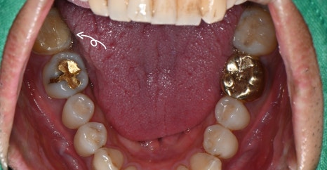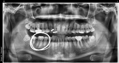 오른쪽 아래 첫 번째 어금니(제1대구치)에 깊은