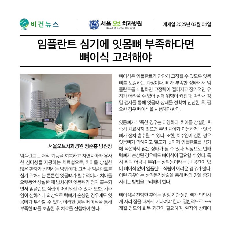 임플란트 수술 뒤에는 잇몸 안쪽 뼈가