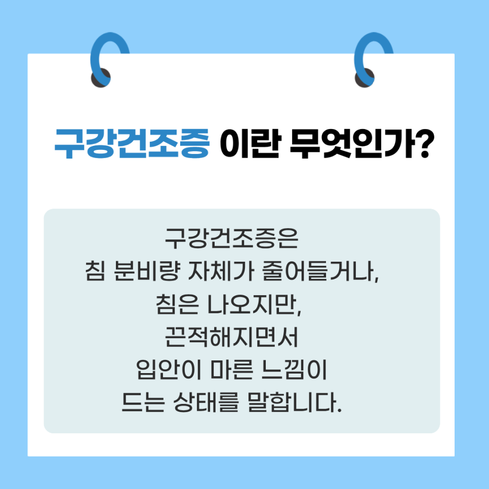 오늘은 구강건조증의 원인·증상·생활관리법을