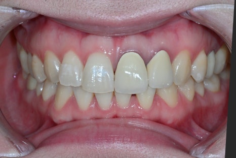 기존 앞니 보철의 색과 모양이 마음에 들지 않아