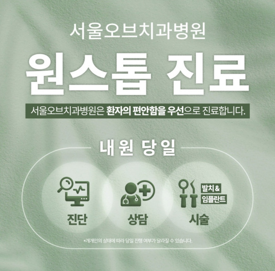 안녕하세요. 잠실 치과 서울오브치과병원입니다.💚 위쪽 어금니 임플란트 상담을 하다 보면 “뼈가 부족해서 바로 임플란트는 어렵다” “상악동 거상술이 필요하다”는 말을 듣고 걱정부터 하시는 분들이 많습니다. 처음 듣는 용어다 보니 큰 수술처럼 느껴지기도 하고, 임플란트 치료가 복잡해지는 건 아닐지 부담을 느끼는 경우도 적지...