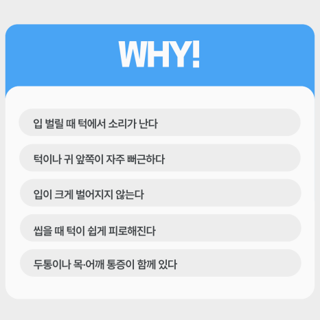 턱에서 소리가 난다면? 턱관절장애 증상일 수 있습니다