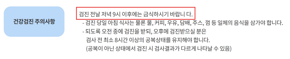 검진 전날 저녁 9시 이후부터는 금식이 필수이며,