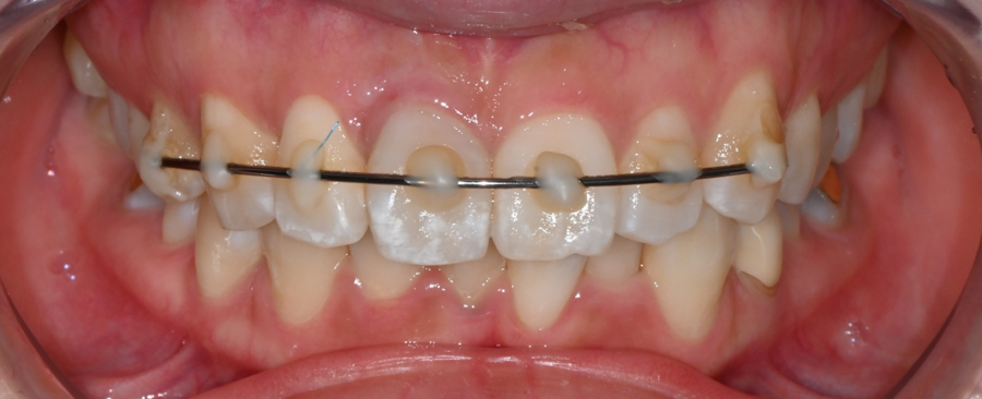 탈구된 앞니를 재위치하고 고정 장치를 이용해 치료한 사례입니다.