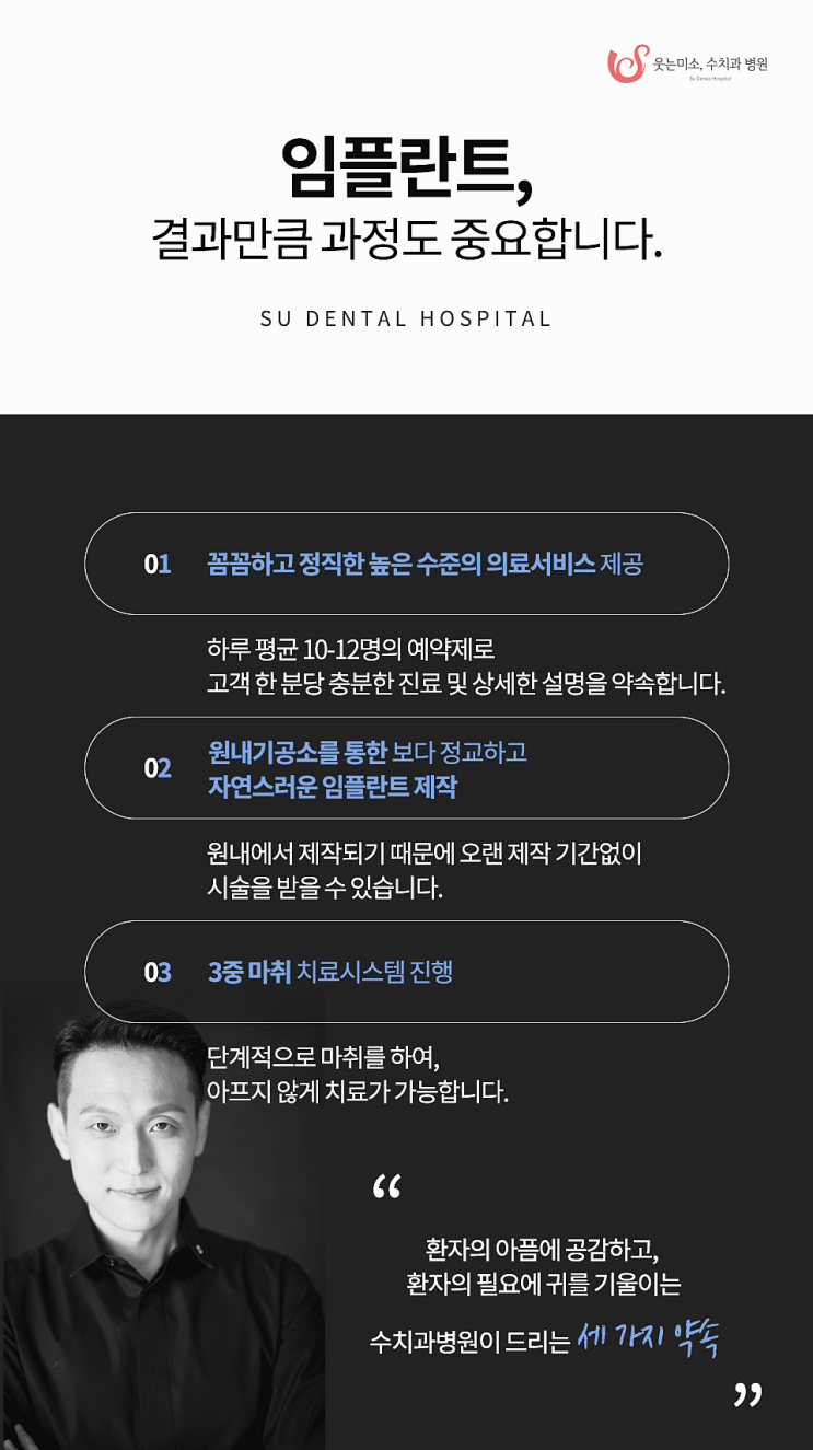 저는 이 글을 보시는 분께서 조금은 번거롭겠지만, 임플란트만큼은 특히나 자연치를 대체하기에 신중히 선택하시라고 말씀드리고 싶었습니다.