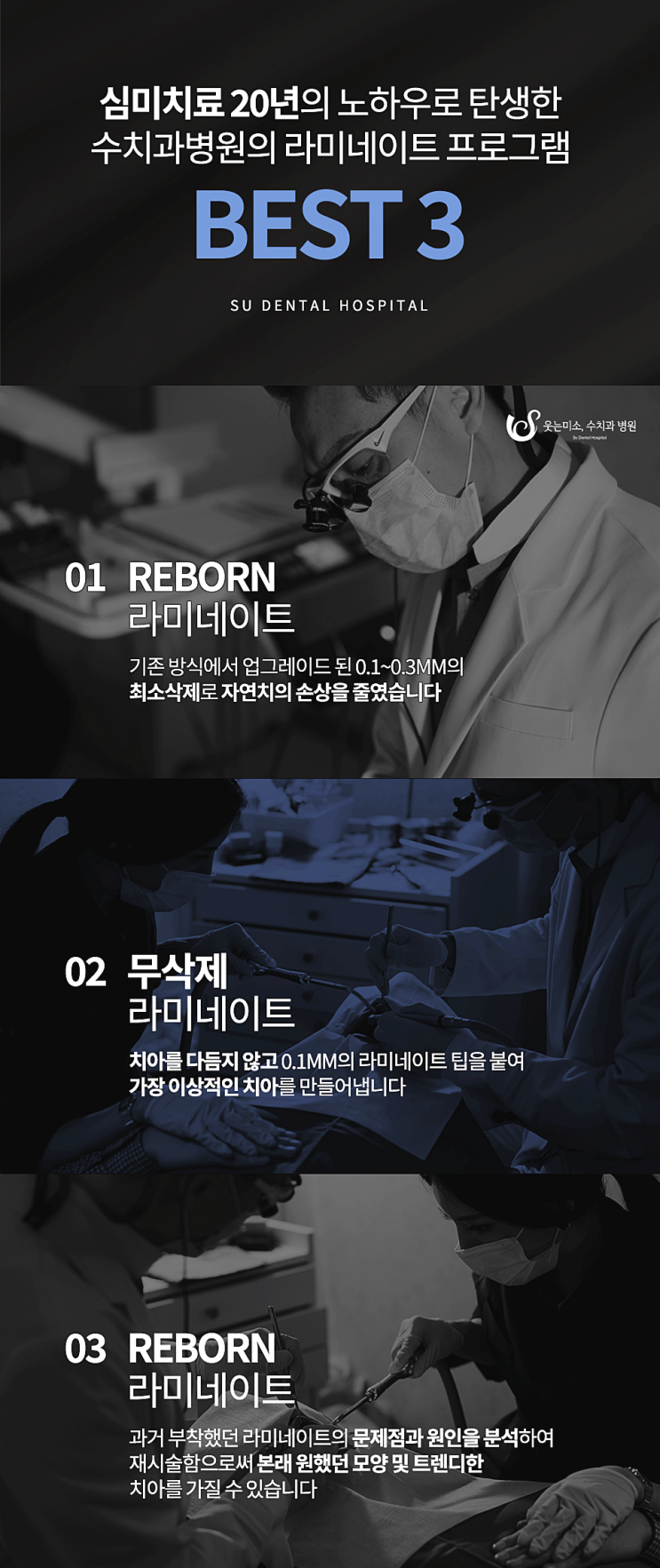 그중 하나는 'Reborn 라미네이트'입니다. 자연치를 소량 삭제하던 기존 방법을 업그레이드한 원리인데요.