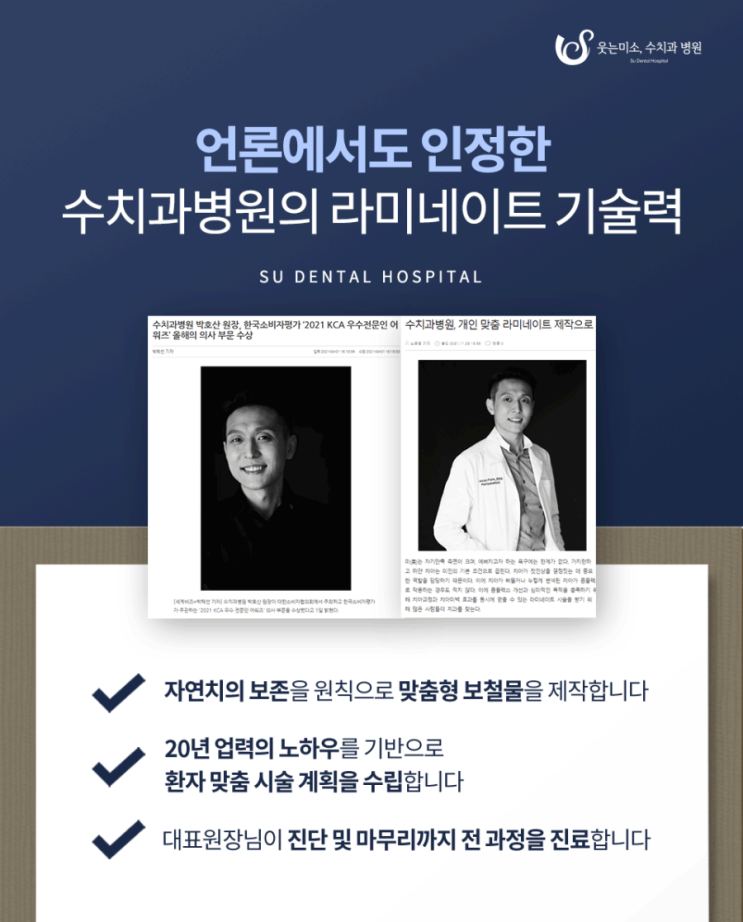 무조건 라미네이트가 좋다고 권장하는 과잉진료를 피해야 한다는 점이에요.