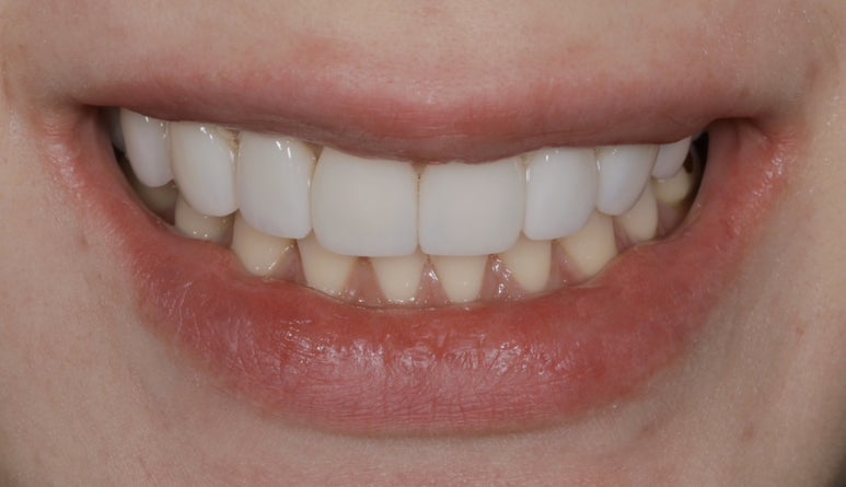 본론 케이스로 돌아와서 위의 경우가 실제로 치아 삭제 후에 촬영한 사진인데요, 보다시피 전체적으로 굴곡진 부분만 부드럽게 다듬은 수준으로 법랑질이 온전하게 남아있는 걸 보실 수 있답니다.