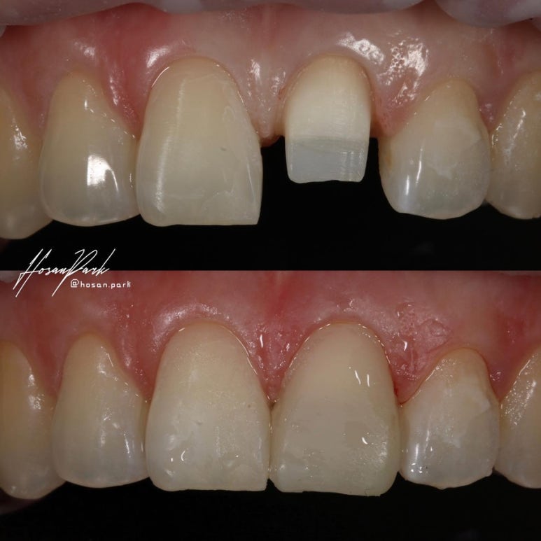 저라도 이사진만 보면 어디가 보철물일까? 할 것 같아요! 자연스러운 색조와 모양 모두 만족스럽습니다!