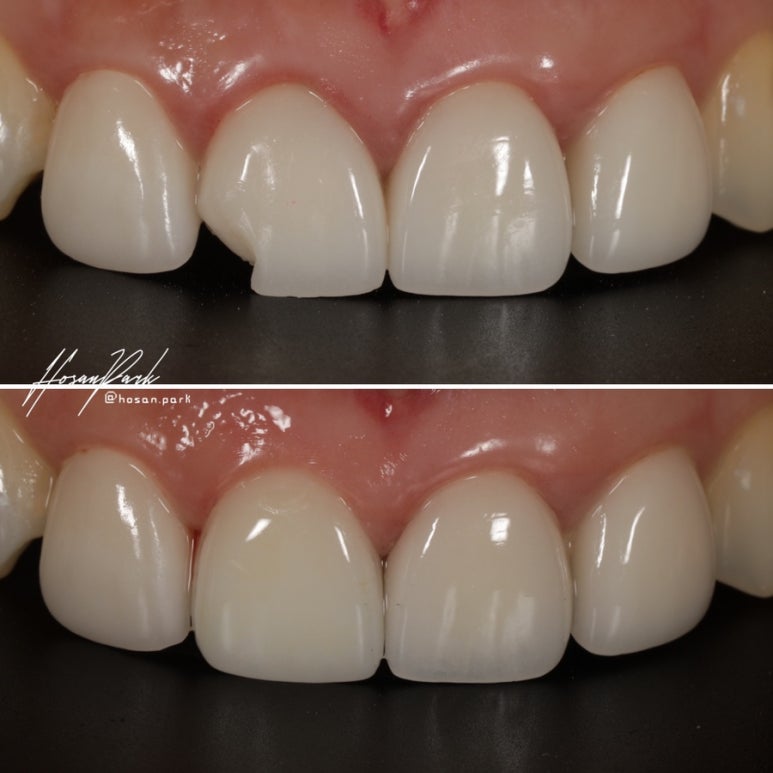 이렇게 하나가 깨졌을 때 아주 유용한 설루션이 바로 #원데이라미네이트 랍니다. (맞춤법 검사 하다가 새로 알게되었네요, solution 은 설루션이라고 표기한다는 ㅎㅎ)