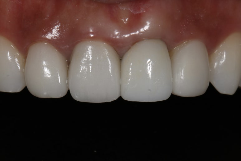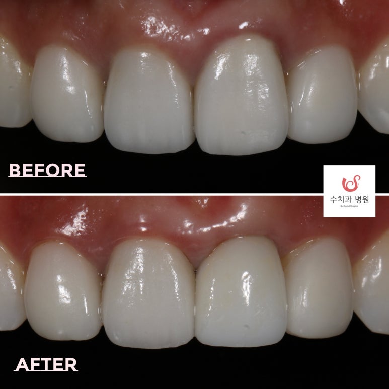 다행히 이렇게 케이스가 잘 마무리되었고요, 저희 병원 같은 경우 앞니 보철을 원내 제작하기 때문에 색조와 모양도 만족스럽게 마무리가 잘 되었답니다.