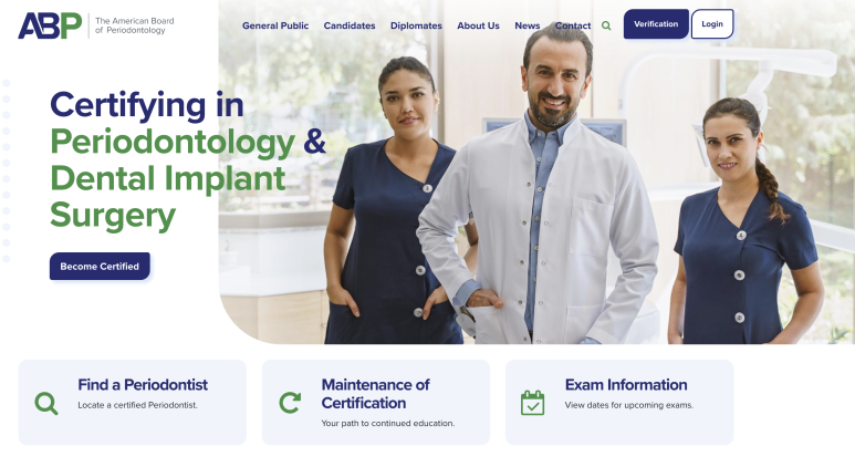 미국 치주과 + 임플란트 수술 전문의 인증 기관 홈페이지