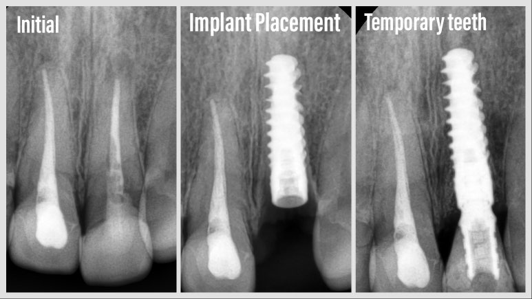 수술 전 - 임플란트 수술 후 - 임시치아 장착 후 엑스레이 사진