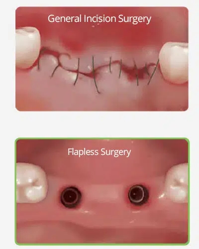 결국 임플란트라는 티타늄 나사를 잇몸뼈에 심는 과정에서 가장 최소 침습적 수술은 잇몸 절개를 최소화하고, 봉합조차 필요 없는 바로, 플랩리스(flapless) 방식입니다.