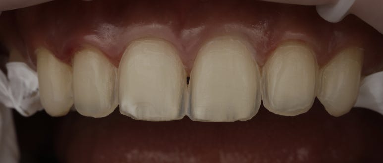 실제 라미네이트 프렙 후 접착 직전의 사진인데요, 치아의 앞면 및 절단면 위주로, 법랑질에 국한된 삭제를 하는 경우 대부분 부작용도 거의 드물고, 접착력도 좋기 때문에, 제가 가장 선호하는 프렙 디자인이랍니다.