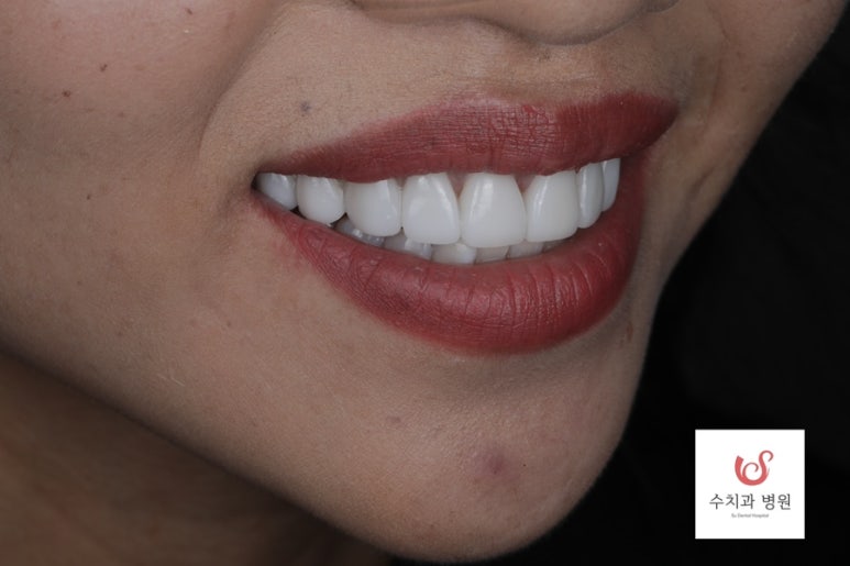 웃으실때 치아가 많이 보이시는 편이라 작은 어금니부터 작은 어금니까지 총 10개의 라미네이트 치료 수복을 진행했고, 아래는 치아미백을 진행했답니다. 총 치료기간은 3일이 소요되었어요.