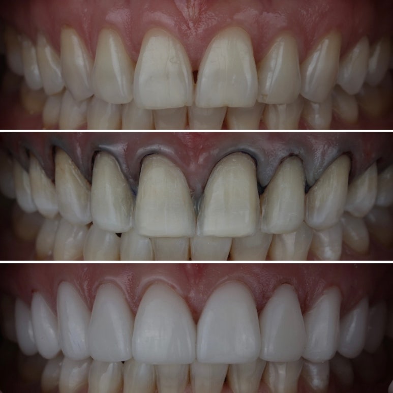 배열이 고르신 편이었기 때문에, 치과용 미세 현미경을 사용하여 최대한 치질을 보존하는 방법으로 미세하게 프랩을 진행하고, 약간의 잇몸 성형 또한 함께 시술했답니다.
