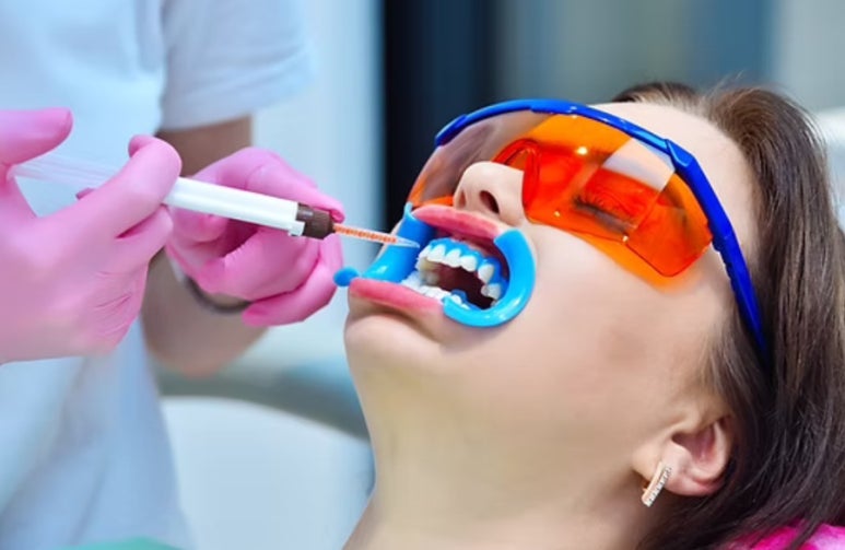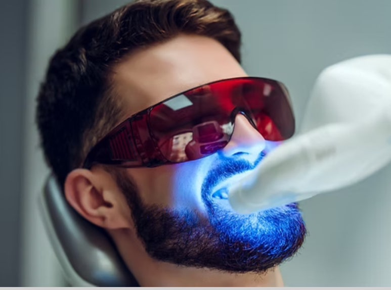 치아미백 전용 광원을 사용하여 빛을 쬐어주면, 미백제가 더욱 활성화 된답니다. 그리고 2번과 3번을 3회-4회 반복해줍니다.