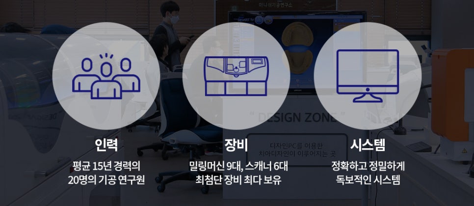 미니쉬는 평균 15년 경력의 기공연구원들과 최첨단 시스템, 3D 프린팅 기술을 활용해 개인 치아에 맞춘 미니쉬를 제작합니다.