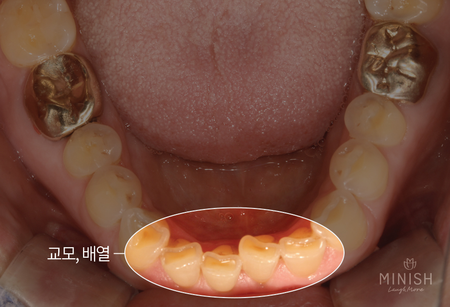 치아 겉면인 에나멜의 약해진 부분을 복구하고 치아의 색상, 배열 등 치아와 전체적인 안모 조화를 고려하여 개선을 진행해야 했습니다. 그래서 선택한 것이 미니쉬, 치아코팅인데요!