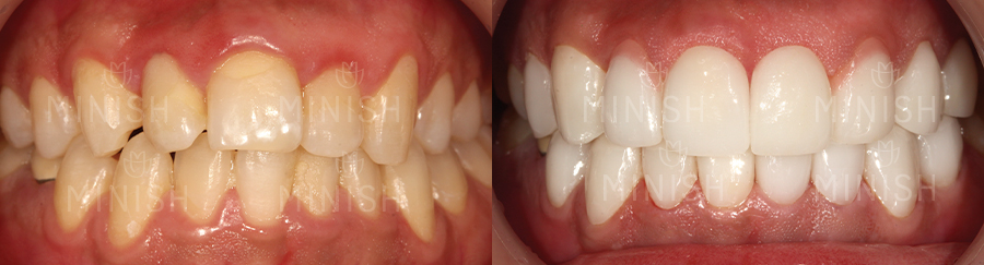 하지만 미니쉬를 만난 이후 가평아들의 인생은 완전히 바뀌었습니다. 선천적 결손치로 인해 짝꿍이 없었던 앞니를 두 번째 앞니인 측절치를 미니쉬 솔루션을 이용해 정상적인 형태로 복원해주었죠. 뿐만 아니라 #34번 치아 미싱으로 삐뚤빼뚤했던 치아 배열과 색감, 질감까지 건강하고 아름답게 개선이 되었으며, 핑크미니쉬로 자연스러운 치아 형태 개선 및 잇몸 라인 대칭이 완성되었습니다.
