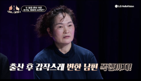 그후 지인의 소개로 5년 뒤 재혼하였지만, 둘째 딸을 낳은 후 남편은 갑자기 폭력을 일삼았다고 합니다. 이때 관자놀이가 함몰 되어 쑤시고 두통이 심한 상태! 이 폭력은 경기도엄마뿐 아니라 어린 딸에게까지 이어져 더이상 두고 볼 수 없던 엄마는 두 딸을 데리고 도망쳤습니다. 그렇게 딸들을 위해 안 해본 일 없이 일을 시작한 경기도엄마.