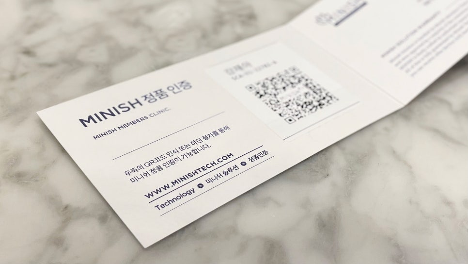 해당 보증서에는 미니쉬테크놀로지(주)에서 솔루션을 제공 받은 병원이라는 내용과 기술력, 장비, 재료, 보증기간까지 확인이 가능합니다. 보증서를 제공 받지 못했다거나, QR코드 스캔을 통한 인증이 안 된다면 미니쉬를 흉내낸 가짜입니다.
