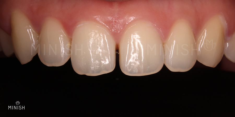 위 사례자분은 수 년 간의 교정치료를 마무리한 후 다시 앞니가 벌어졌습니다.
