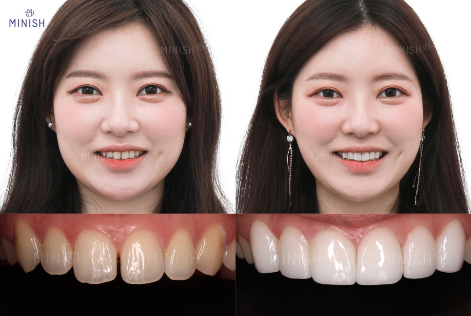 배열에는 큰 차이가 없지만, 확연한 심미성의 증대를 느낄 수 있죠! 미니쉬 솔루션 후, 한층 더 자연스러운 얼굴 표정도 확인해보세요.