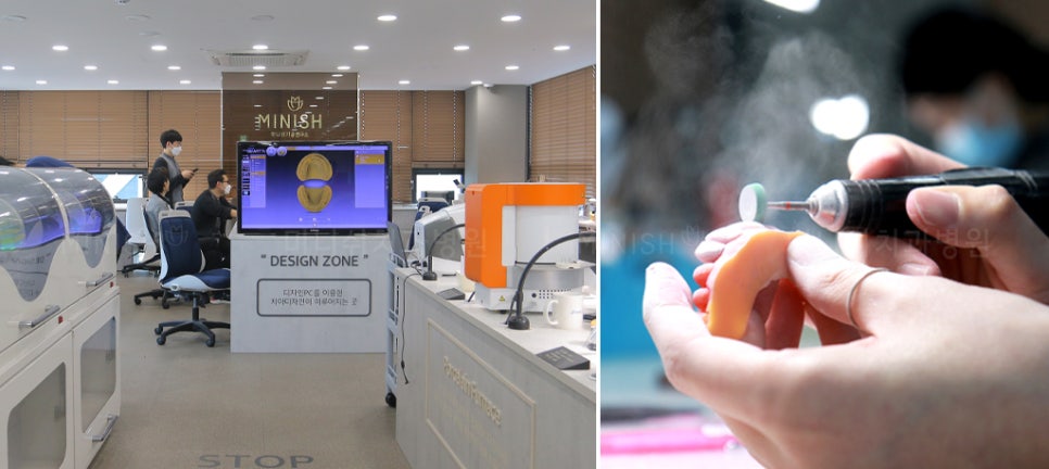 자연치아를 살린다는 것은 치아가 원래 형태와 크게 다르지 않기에 보철물이 굉장히 얇고 개개인의 치아 모양에 맞게 제작되어야 한다는 건데요. 미니쉬기공연구소는 평균 경력 15년 이상의 기공연구원이 다수 상주해 미니쉬를 제작하고 있습니다. 기계로 환자의 치아에 딱 맞게 제작이 어려운 부분은 섬세하게 다듬는 2차 기공 과정을 통해 미니쉬를 환자 맞춤으로 제작합니다.