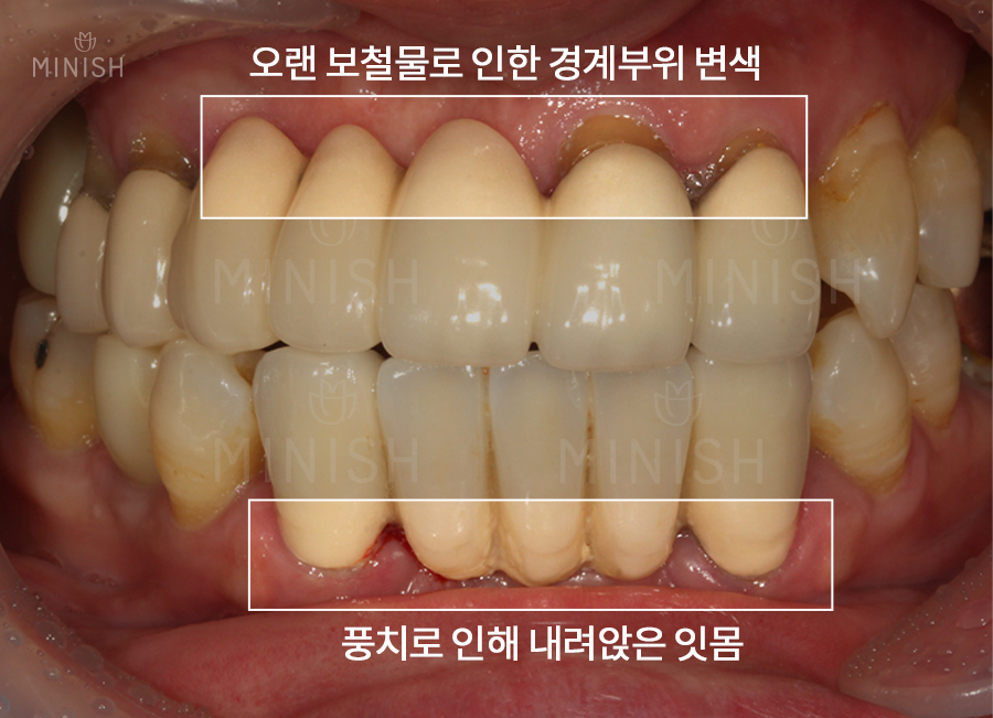 오래된 보철 부작용으로 극심한 스트레스를 받았던 사례자의 구강 사진