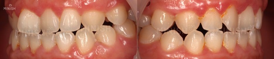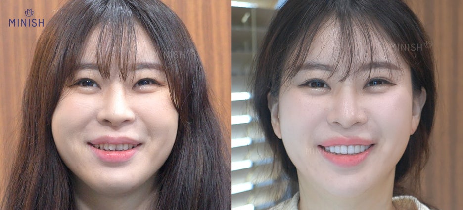 어긋나서 물리던 위아래 치아가 미니쉬 후 제대로 교합되고 있네요! 턱이 본래의 위치를 찾으면서 얼굴형이 갸름해지고 웃는 입매도 자연스러워 보입니다. 여러분은 어떤 미소에 더 호감을 느끼시나요? 우리의 이가 인상에 미치는 놀라운 영향이 느껴지시죠?