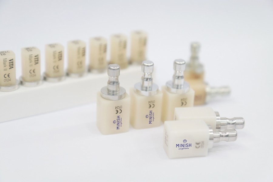 미니쉬를 이루는 재료는 미니쉬테크놀로지(주)에서 공급받는 미니쉬블록으로, 자연 치아와 물성이 유사하여 결합 후 본래의 내 치아처럼 이질감 없이 사용할 수 있다는 장점이 있습니다.