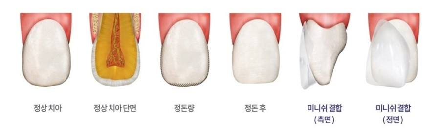 미니쉬는 자연 치아의 치면을 얇게 감싸는 치아코팅진료입니다.