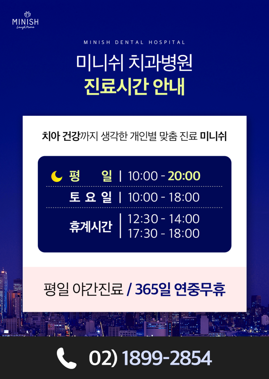 안녕하세요. 구강 건강과 아름다움을 동시에 만족시켜 드리는 미니쉬치과병원입니다.