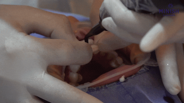 미니쉬는 모든 과정이 디지털화 되어 있습니다. 그 중 하나가 3d 스캐닝 과정인데요. 과거 인상재를 사용해 본뜨는 것이 아닌 3d구강스캐너를 이용해 구강 내 보이지 않는 부위까지 정확하게 스캔합니다. 이를 기공 연구소로 전송하여 기공 연구원이 치아를 디자인하고, 미니쉬를 제작합니다.