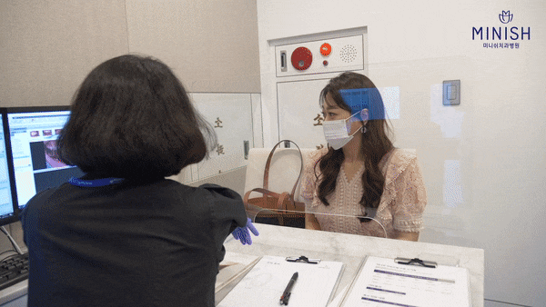 원데이미니쉬를 위해 병원을 방문하면 우선적으로 접수와 상담을 실시합니다. 어떤 치아 고민을 가지고 있는지 실장님과 세심한 상담을 통해 문제를 캐치하고, X-Ray 촬영을 진행합니다.