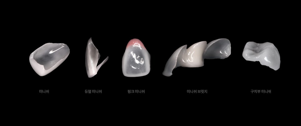 해당 과정에는 정밀가공기술이 뒷받침 되어 있는데요. 미니쉬는 자연치아와 가장 유사한 '미니쉬블록'을 사용하는데, 이는 밀링 방식으로 제작 됩니다. 때문에 변형이나 오차가 없으며 보다 정밀한 제작이 가능합니다. 이후 기공 연구원의 후가공을 통해 보다 얇은 비니어 제작에 돌입하며, 세상에 하나 뿐인 나만의 미니쉬가 탄생됩니다.