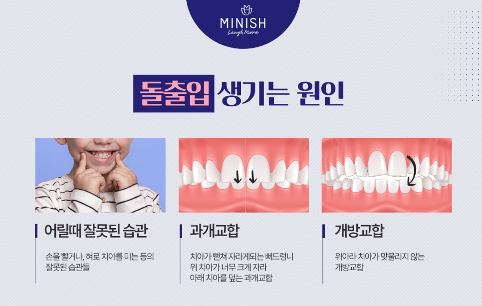 자세히 알아보기에 앞서 돌출입이 발생하는 원인과 문제점에 대해 알아볼게요.