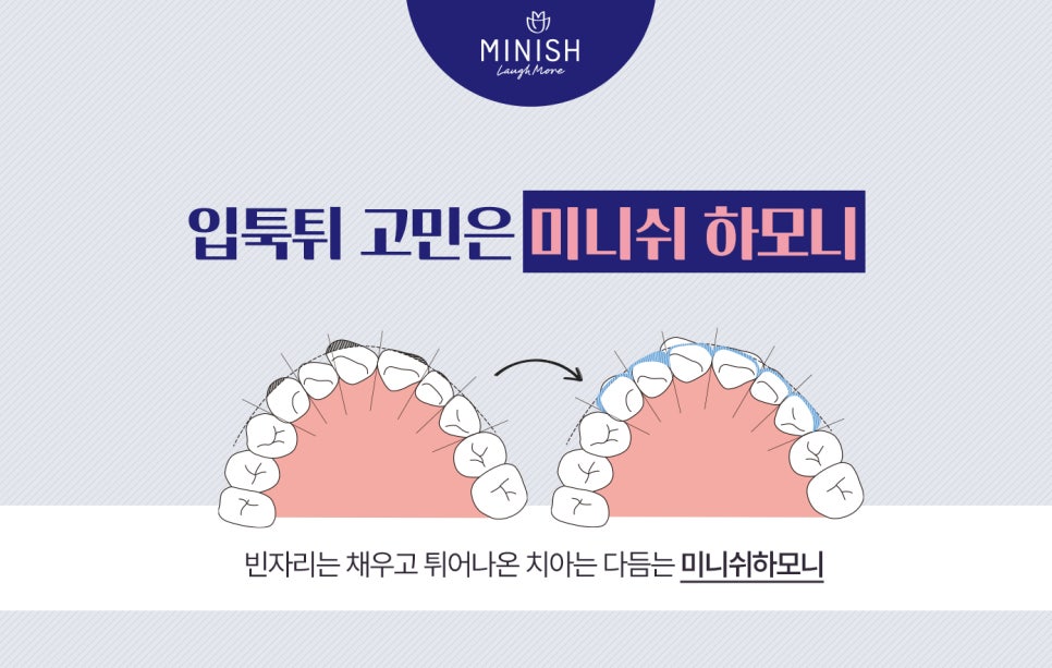 이렇게 돌출입의 원인부터 문제점 그리고 미니쉬하모니로 돌출입 교정하는 방법과 선택해야 하는 이유에 대해 알아보았습니다