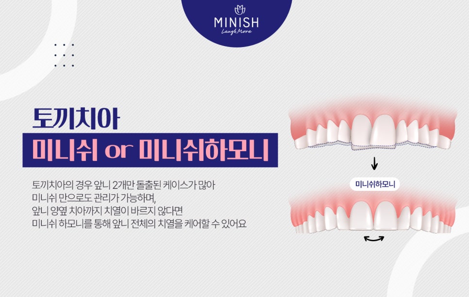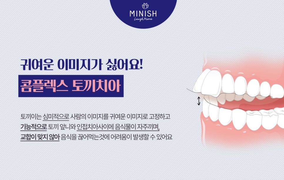 이렇게 도드라진 앞니 토끼치아 콤플렉스로 고민하시는 환자분들을 위해 미니쉬하모니를 통한 앞니교정에 대해 알아보았어요 미니쉬 하모니에 대해 더 궁금하신 사항이 있으시다면 미니쉬치과병원을 찾아주세요