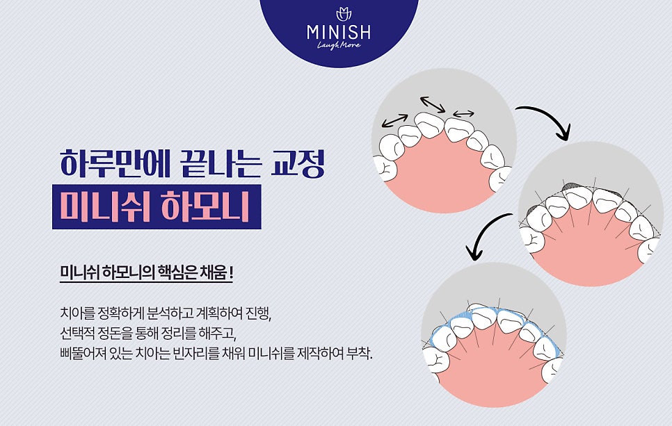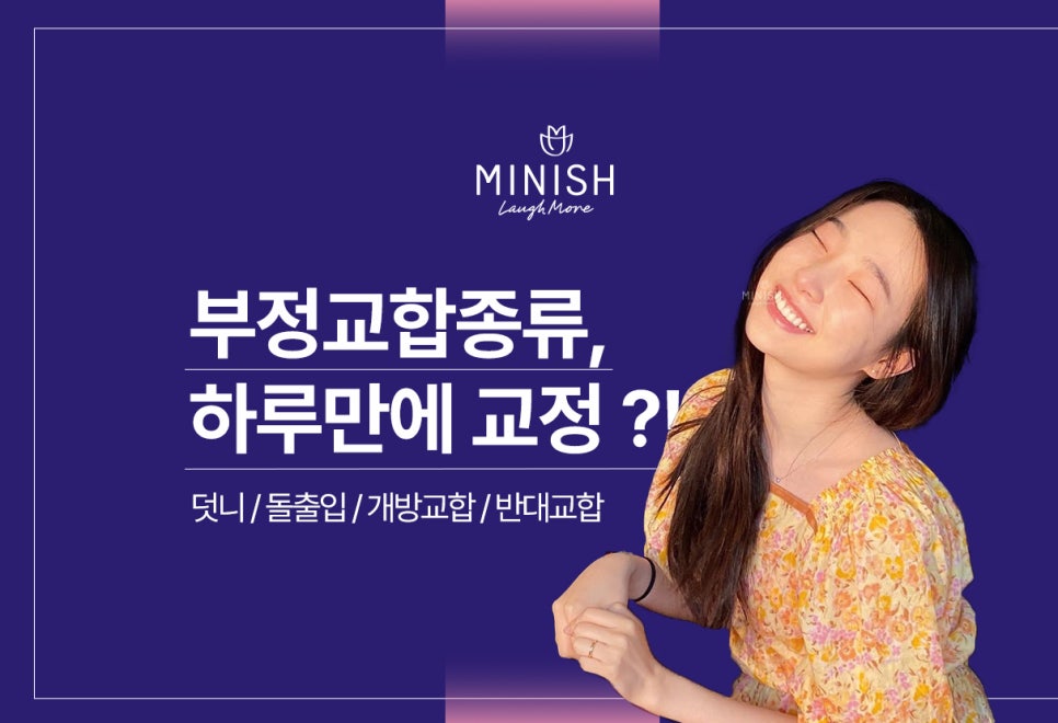 이렇게 다양한 교정이 필요한 부정교합 종류 그리고 치아교정 방법에 대해 알려드렸습니다. 그동안 교정은 하고 싶었지만 시간적인 부분, 유지장치 등에 대한 두려움으로 엄두를 내지 못하셨던 분들이라면 미니쉬하모니로 가지런한 치아의 꿈을 이루시길 바라겠습니다. 감사합니다.