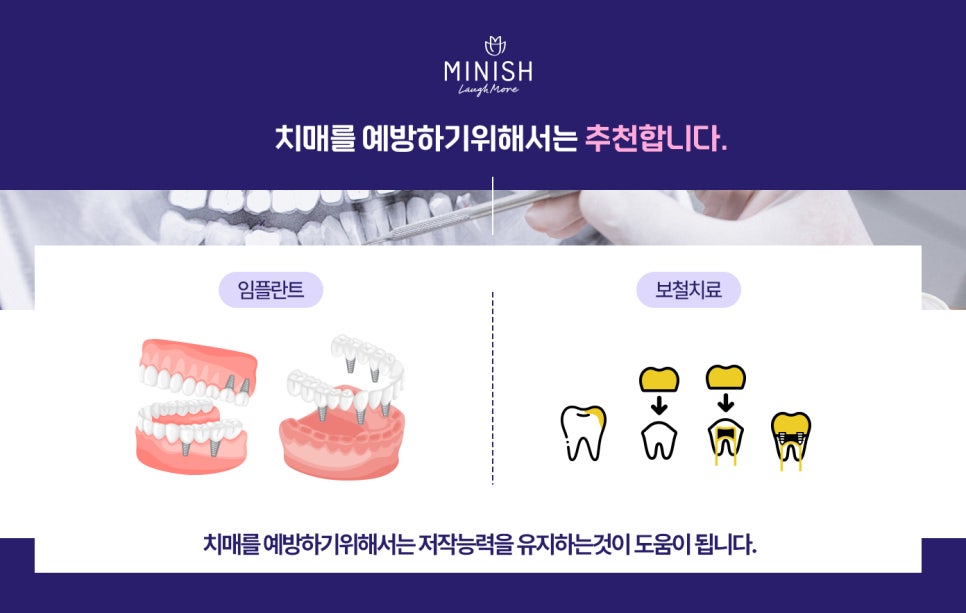 임플란트와 보철치료로 저작능력을 유지하는 것이 치매 예방에 중요한 예방 방법이죠.