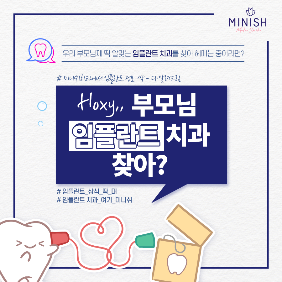 잠시 시간을 내어 꼼꼼하게 읽어보시고, 부모님에게 카톡으로 임플란트 치과 찾는 방법 링크 보내드리면 어떨까요?