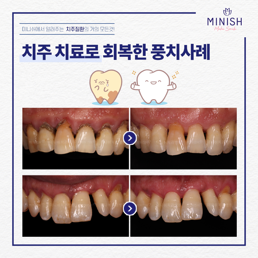 풍치 치료를 통해 치석 제거 등 한결 깔끔해진 변화를 보실 수 있는데요.