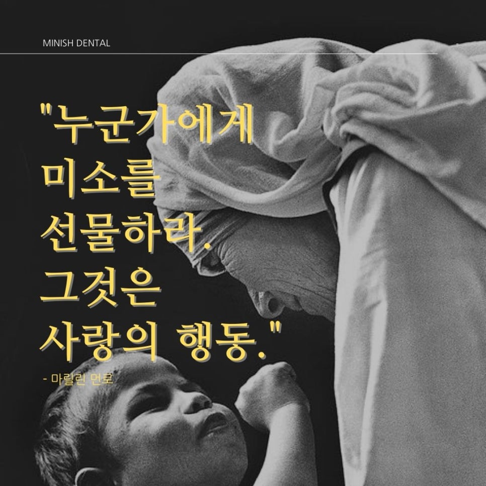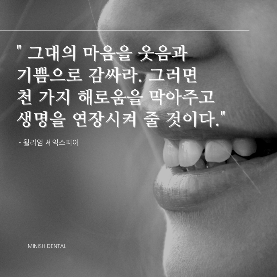 건강하고 아름다운 미소를 추구하는 미니쉬치과병원입니다. 미소의 중요성과 가치를 강조하는 짧은 명언이 많습니다. 힘든 하루 중에도 잠깐만 미소를 지어보면 묘하게 힘이 나기도 하죠 :) 함께 나누고픈 명언들을 소개하니, 주변의 소중한 분들에게도 공유해주보세요~ 웃음, 미소 짧...