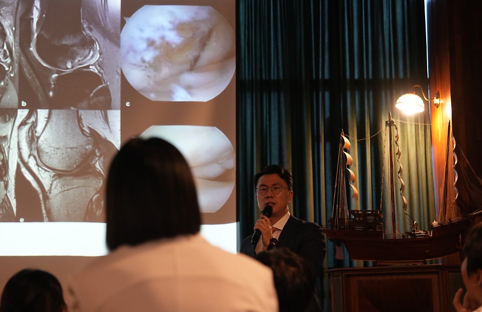 김 원장은 “주사 방식 때문에 일부에선 줄기세포 치료를 손쉽고 간단하게 보는 시각이 있는데, 뼈에다 미세한 구멍을 내서 치료제만 넣으면 되는 게 다가 아니다”며 “전방십자인대 재건술, 후외측방인대 재건술, 내측 연골판 봉합술, 휜다리 교정수술 등 기존 치료법을 다 시도하고 난 다음 최상위 단계가 줄기세포 수술이라고 보면 된다. 진단과 치료 과정 모두 난이도가 굉장히 높고, 환자를 관리하는 일도 결코 쉽지 않다”고 말했습니다.