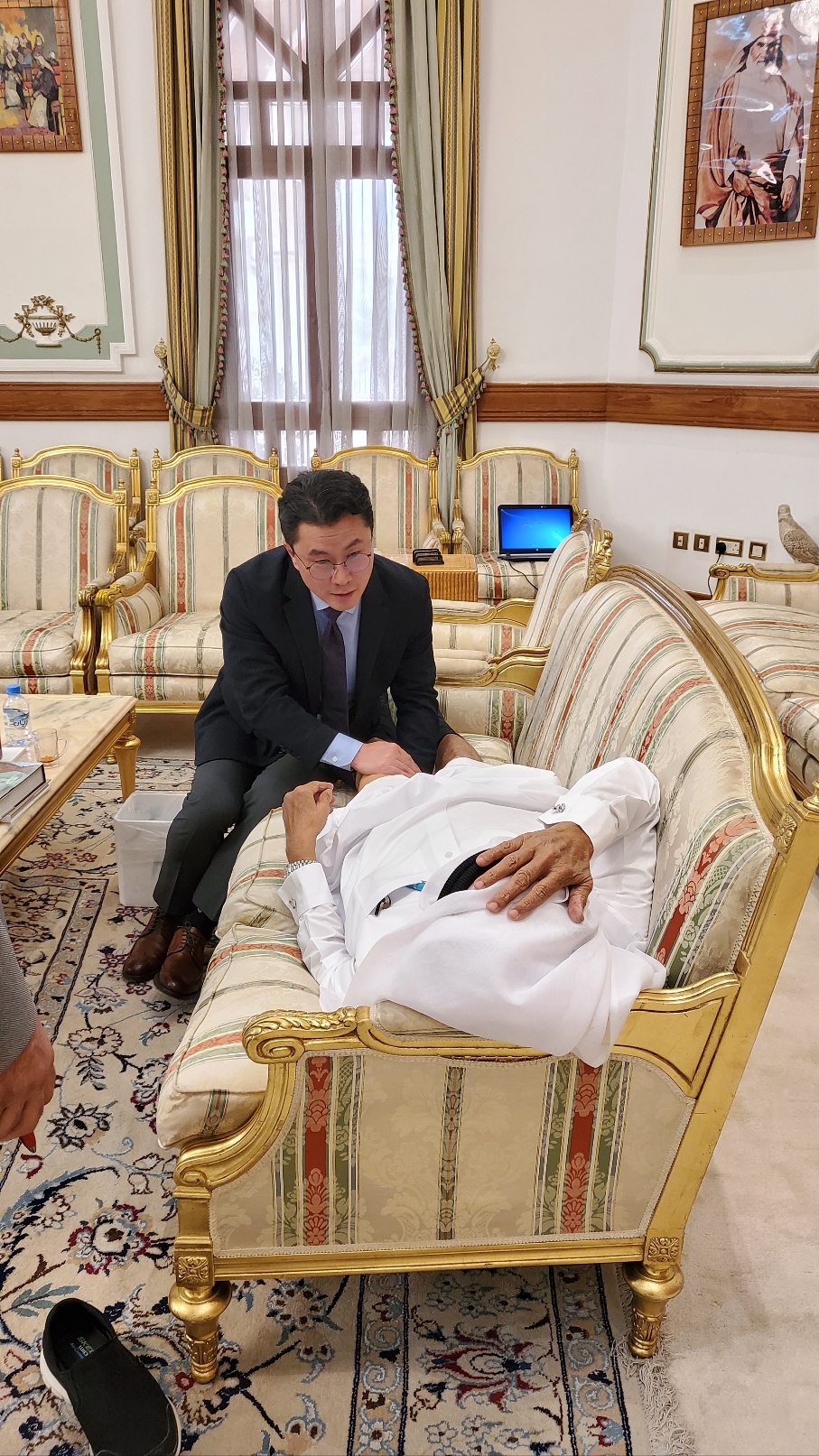 김 원장이 카타르 고위 인사의 무릎 관절을 진료하고 있다.
