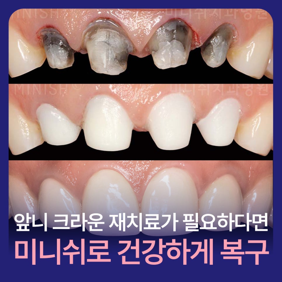 앞니 크라운 재치료가 필요하다면? 미니쉬로 건강하게 복구하세요